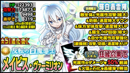 復刻枠はメイビスの輝白轟雷陣がまじで強いので、高難度で少しでも楽に勝ちたいって人はこの魔法からでもメイビス集めるのをお勧め。