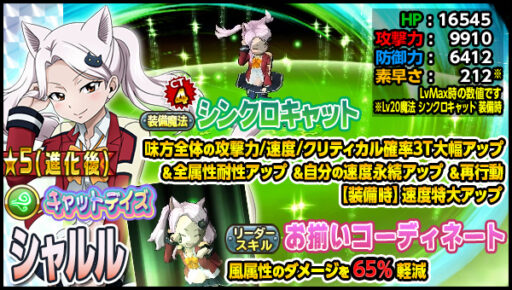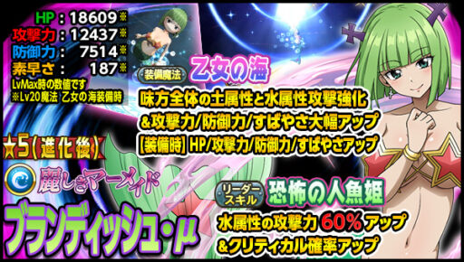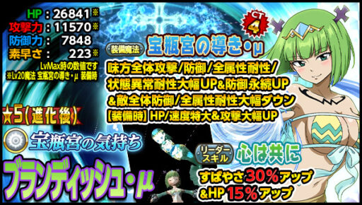 ブランディッシュ:クリスマスと魔法の内容がちょっとが被ってるけど、属性&状態異常耐性の管理がしっかりできるならこっちのほうがちょっと強いかなって印象。何気にブランディッシュで初のLSすばやさ30%アップ持ちの個体でブランディッシュの中で現状最速なので推しならあったほうが良い。